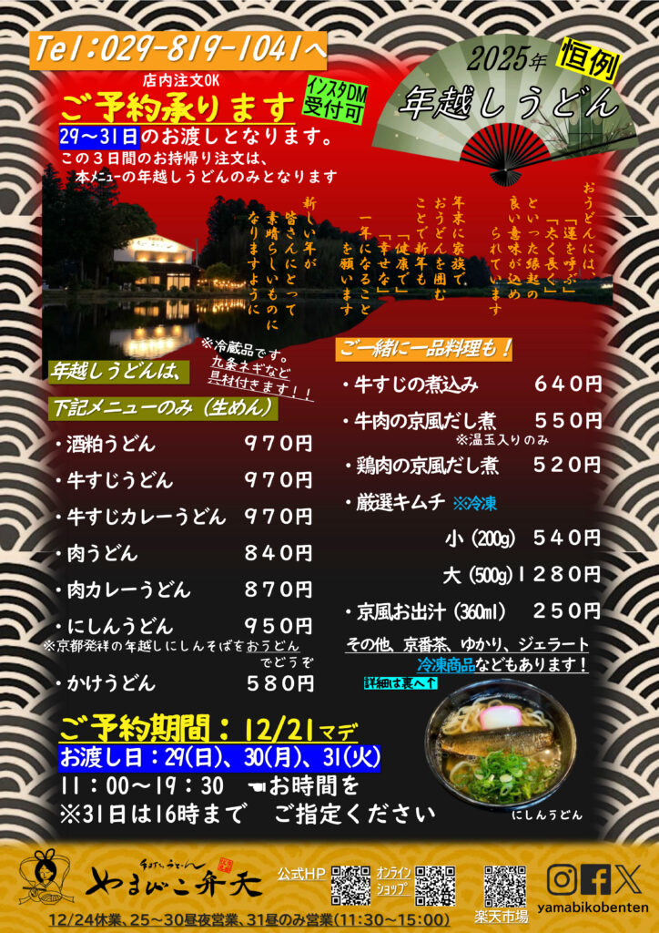 お電話、店内注文、インスタDMどちらでも承ります。 ご予約期間は12/3~20まで。 受け渡し12/29,30,31